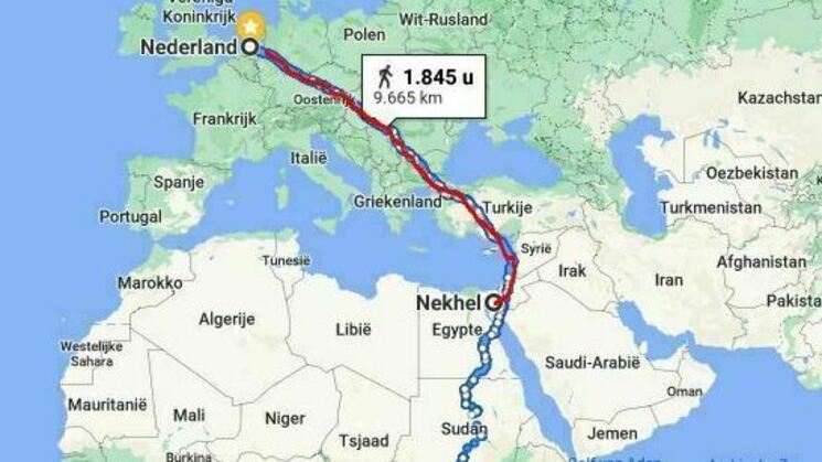 Wat een stel bikkels zijn jullie! Na 12 dagen zijn we al bijna op de helft van onze route naar Kenia! 😲🤩🙌🏼 De totaal afgelegde afstand staat op 4591km! We zitten nu vlak voor het Suez-kanaal bij Nekhel, Egypte! Wauw wauw wauw!